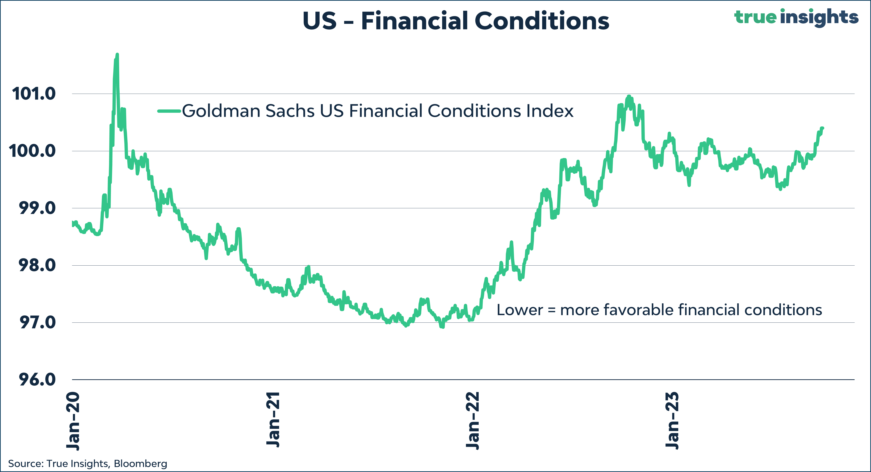 · After tightening significantly from the previous month, financial conditions must improve to provide any upside for equities.