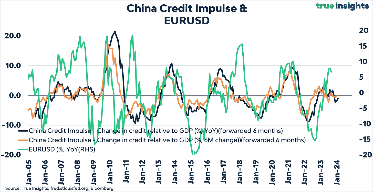 The Chinese Credit Impulse points towards maintaining our short euro (long US dollar) position. Based on the credit impulse, there is room for another five percentage points decrease.