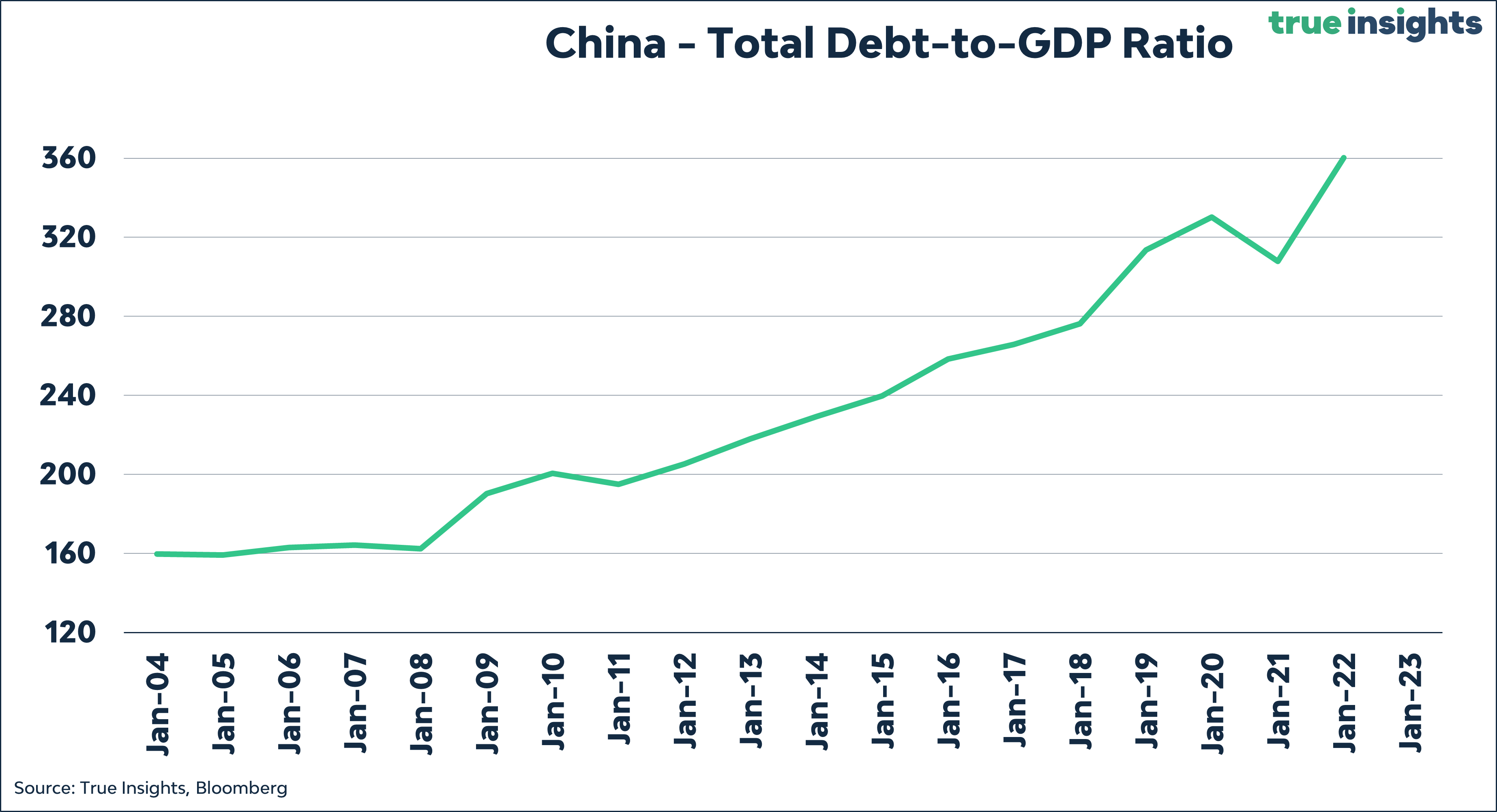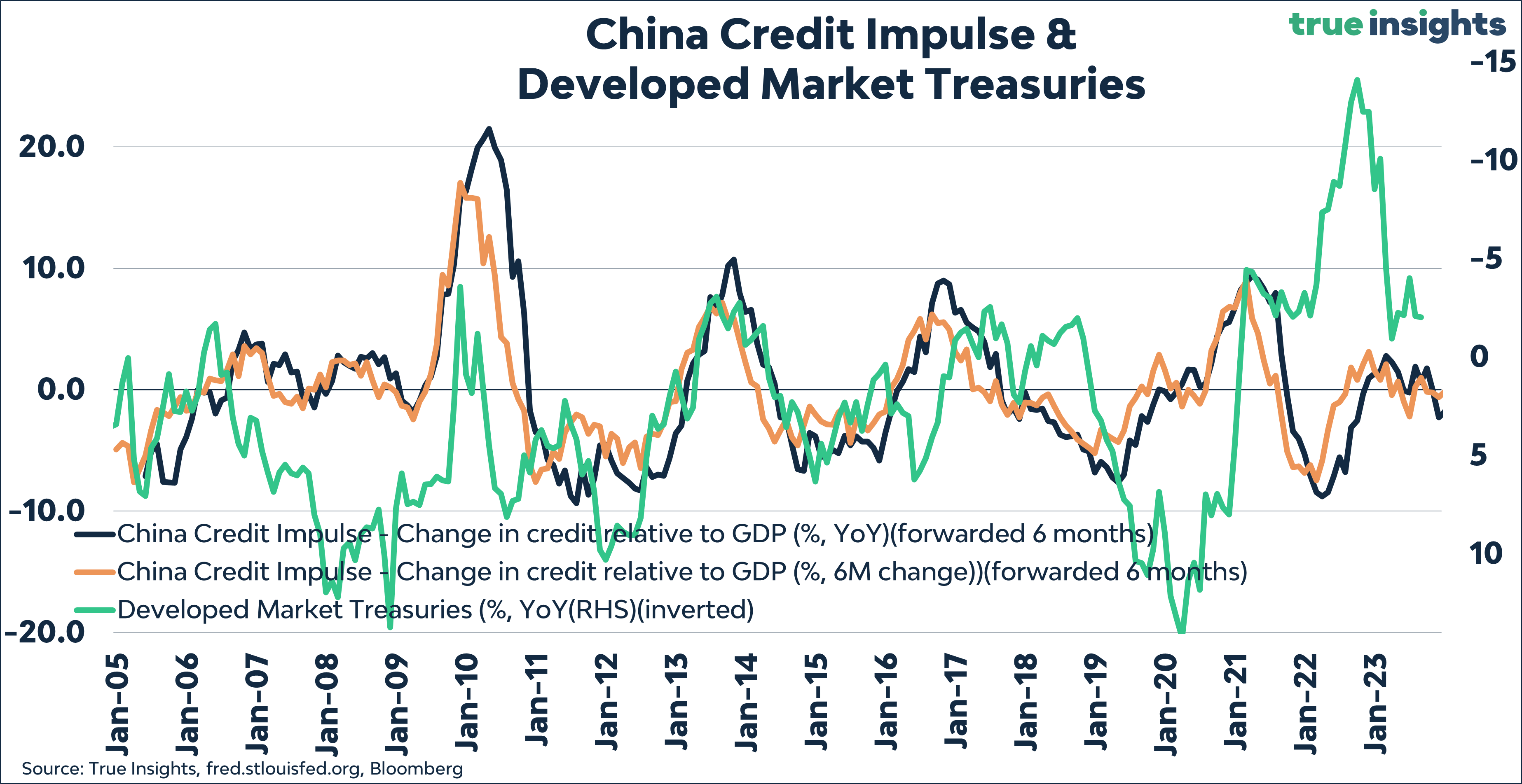 As mentioned in the China section, a country burdened with a rapidly rising debt load - total debt-to-GDP is heading to 400% - has less room to stimulate itself out of debt issues. Consequently, China’s credit impulse remains uninspiring.
