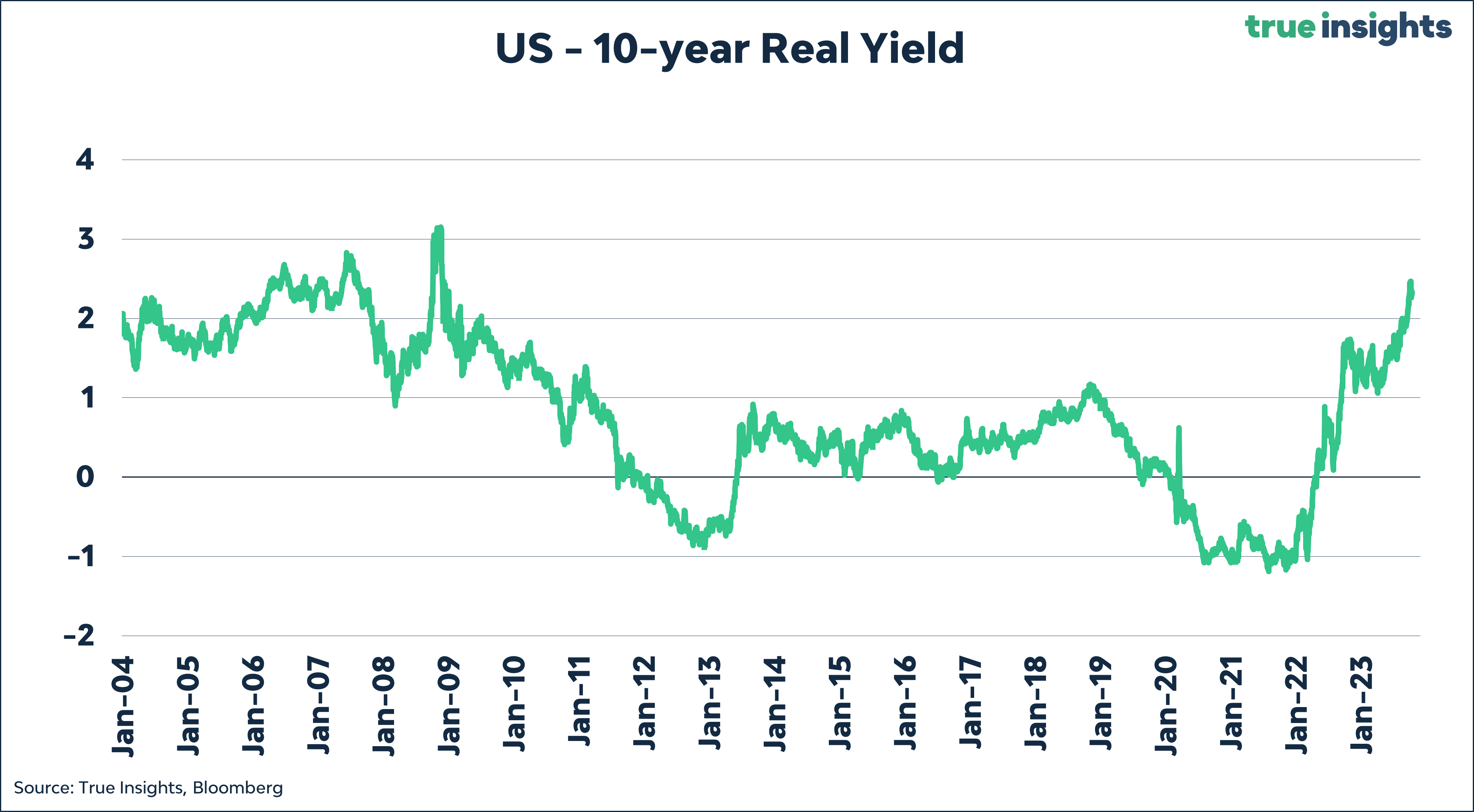 Since Fitch’s downgrade in early August – which meant the US officially lost its Triple-A status, as two of the three major credit rating agencies no longer awarded the highest credit rating – US Treasury debt has increased by a mind-boggling USD 1.1 trillion, a 3.4% increase in just 3.5 months. It’s only a matter of time before Moody’s removes the US from Triple-A.